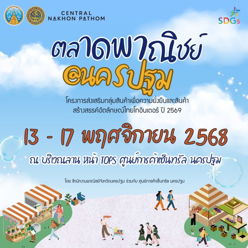 จังหวัดนครปฐมขอเชิญเที่ยวงาน “ตลาดพาณิชย์ @นครปฐม” ส่งเสริมสินค้าเพื่อความยั่งยืนและอัตลักษณ์ไทย