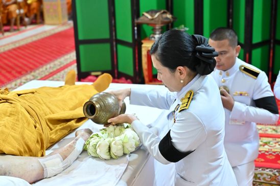 วัฒนธรรมจังหวัดนครปฐม เข้าร่วมพิธีสรงน้ำสรีระสังขารพระราชมงคลวชิราคม (หลวงปู่แผ้ว ปวโร) และนำเจ้าหน้าที่กลุ่มพิธีการศพที่ได้รับพระราชทานปฏิบัติงานพิธีพระราชทานน้ำหลวงสรงศพ
