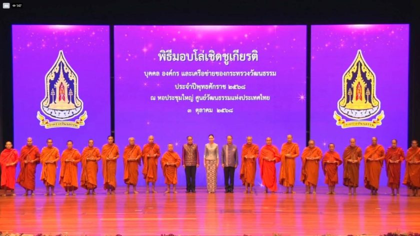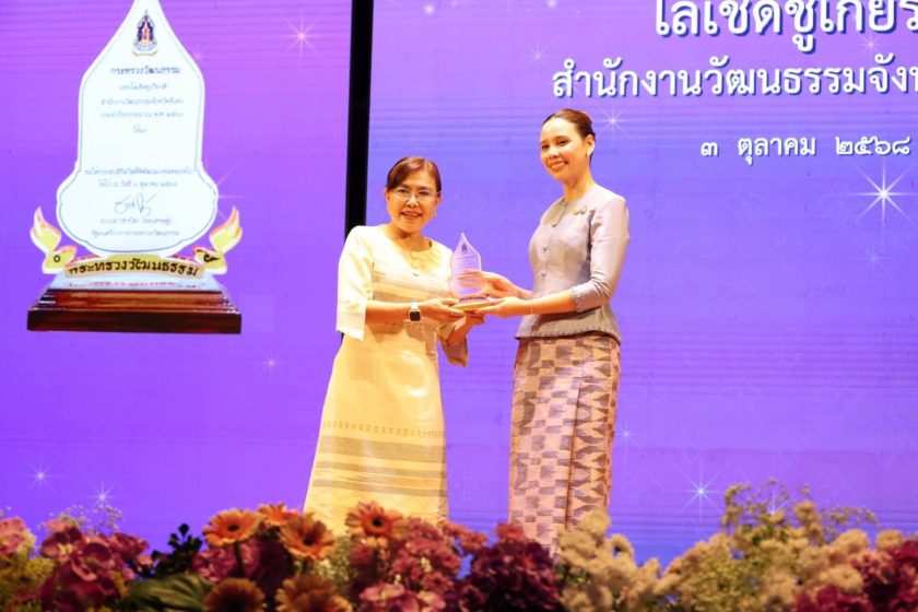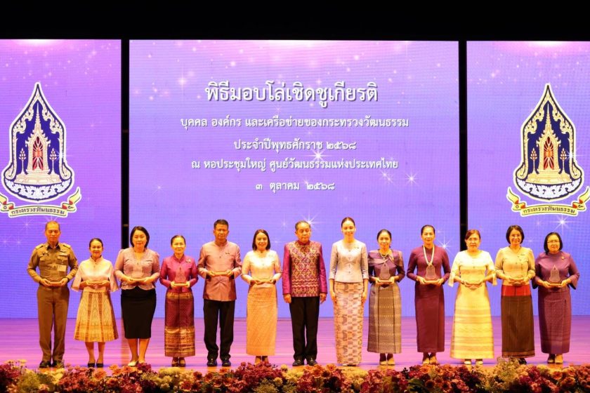 เมื่อวันที่ 3 ตุลาคม 2568 เวลา 13.30 น. ที่หอประชุมใหญ่ ศูนย์วัฒนธรรมแห่งประเทศไทย นางสาวซาบีดา ไทยเศรษฐ์ รัฐมนตรีว่าการกระทรวงวัฒนธรรม เป็นประธานในพิธีมอบโล่เชิดชูเกียรติบุคคล องค์กร และเครือข่าย กระทรวงวัฒนธรรม ประจำปี พุทธศักราช 2568 เนื่องในวันคล้ายวันสถาปนากระทรวงวัฒนธรรม ครบรอบ 23 ปี ภายใต้แนวคิด “นำคุณค่า พัฒนาสังคม สร้างเศรษฐกิจอย่างยั่งยืน” โดยมี นายประสพ เรียงเงิน ปลัดกระทรวงวัฒนธรรม ผู้บริหารกระทรวงวัฒนธรรม วัฒนธรรมจังหวัด ข้าราชการ เจ้าหน้าที่กระทรวงวัฒนธรรม เครือข่ายทางวัฒนธรรม เข้าร่วมงานฯ