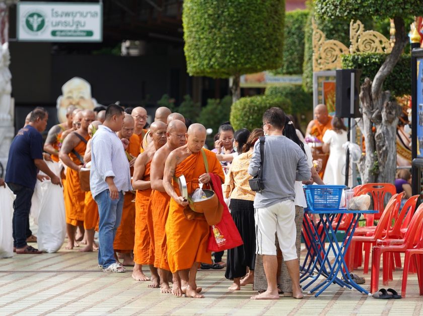 นครปฐม พุทธศาสนิกชน ญาติโยมร่วมบุญสืบสานพิธีตักบาตรเทโวโรหณะ วัดไผ่ล้อมพระอารามหลวง