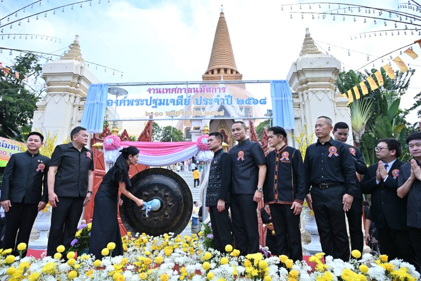 วันที่ 2 พฤศจิกายน 2568 เวลา 15.30 น. ที่บริเวณลานหน้าพระร่วงโรจนฤทธิ์ องค์พระปฐมเจดีย์ อำเภอเมือง จังหวัดนครปฐม สมเด็จพระมหารัชมงคลมุนี เจ้าคณะใหญ่หนกลาง กรรมการมหาเถรสมาคม เป็นประธานฝ่ายสงฆ์ นางสาวอโรชา นันทมนตรี ผู้ว่าราชการจังหวัดนครปฐม เป็นประธานฝ่ายฆราวาส พร้อมด้วย พระเถรานุเถระ คณะสงฆ์ รองผู้ว่าราชการจังหวัด รองนายกเหล่ากาชาดจังหวัด หัวหน้าส่วนราชการ ข้าราชการจากหน่วยงานต่างๆ และประชาชน ร่วมเปิดงานเทศกาลนมัสการองค์พระปฐมเจดีย์ ประจำปี 2568 โดยวัดพระปฐมเจดีย์ ราชวรมหาวิหาร ร่วมกับ จังหวัดนครปฐม หน่วยงานภาครัฐ ภาคเอกชน กำหนดจัดขึ้นระหว่างวันที่ 2 – 10 พฤศจิกายน 2568 รวม 9 วัน 9 คืน ซึ่งตรงกับวันขึ้น 12 ค่ำ ถึงแรม 5 ค่ำ เดือน 12 ของทุกปี เป็นงานประเพณีประจำปีของชาวจังหวัดนครปฐม ที่มีมาแต่โบราณกาล เพื่อให้ประชาชนได้สักการะบูชาพระบรมสารีริกธาตุ สักการะพระพุทธรูปสำคัญที่ประดิษฐานรอบองค์พระปฐมเจดีย์ ได้แก่ พระร่วงโรจนฤทธิ์ฯ พระพุทธรูปศิลาขาว พระพุทธรูปปางตรัสรู้ พระพุทธรูปปางปฐมเทศนา พระพุทธรูปปางไสยาสน์ และพระประจำวันเกิด อีกทั้งรำลึกถึงวันที่พระสมณทูต มีพระโสณะเถระ และพระอุตตระเถระ ซึ่งเป็นผู้นำพระพุทธศาสนามาเผยแผ่ยังดินแดนสุวรรณภูมิ เป็นมรดกสืบทอดมาจนถึงปัจจุบัน ตลอดจนรักษาประเพณีและวัฒนธรรมไทย พร้อมร่วมสร้างบุญกุศล ถวายจตุปัจจัย ในการบูรณปฏิสังขรณ์ถาวรวัตถุในบริเวณองค์พระปฐมเจดีย์ นอกจากนี้เพื่อให้พ่อค้าแม่ค้า เกษตรกร ในพื้นที่ต่างๆ ทั่วประเทศ ได้มีโอกาสนำสินค้าของแต่ละท้องถิ่นมาจำหน่ายให้กับประชาชนโดยตรง อีกด้วย