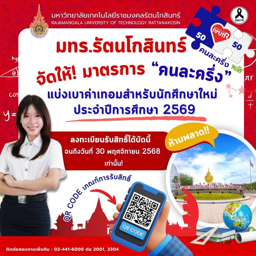 มทร.รัตนโกสินทร์ จัดให้! มาตรการ “คนละครึ่ง” แบ่งเบาค่าเทอม สำหรับนักศึกษาใหม่ ปีการศึกษา 2569