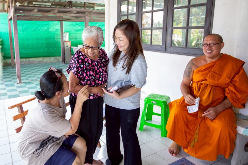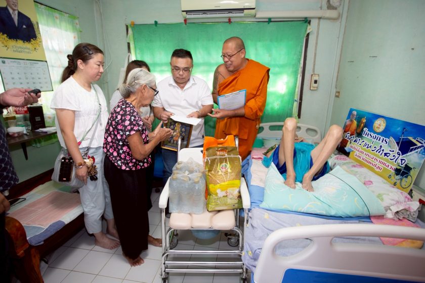 หลวงพี่น้ำฝน กล่าวว่า หลังจากที่ อาจารย์ชุลีพร ได้มาพบที่วัดพอฟังเรื่องราวแล้วถือว่าน่าเห็นใจจึงต้องรีบมา ซึ่งพอใครมาเห็นว่าบ้านหลังใหญ่ คิดว่าน่าจะมีเงินมากแต่ความเป็นจริงชะตาชีวิตก็เปลี่ยนไป ซึ่งตามหลักธรรมคือมีอะไรแน่นอน การมีสติจึงสำคัญที่สุด วันนี้ทราบว่าเตียงของลูกชายเสียหายก็นำมาเปลี่ยนให้ พร้อมกับรถวีลแชร์ ซึ่งก็ได้มอบปัจจัยให้ไปจ่ายค่าไฟฟ้ากับสำรองยังชีพ และลูกศิษย์ชาวใต้หวันก็ได้มาเห็นการทำงานในโครงการธนาคารแห่งกำลังใจ ก็ได้ช่วยเหลืออีกทางหนึ่ง โดยจากนี้จะได้ประสานส่วนที่เกี่ยวข้องมาช่วยเหลือส่วนต่างๆ ที่ทำได้ต่อไปและขอให้กำลังใจกับโยมให้สู้ชีวิตให้ได้