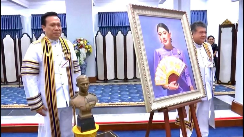 • ผศ.สุรัฐ บุญทรง ผู้อำนวยการวิทยาลัยเพาะช่าง ถวายภาพสีน้ำมัน ขนาด 24 × 32 นิ้ว