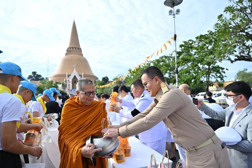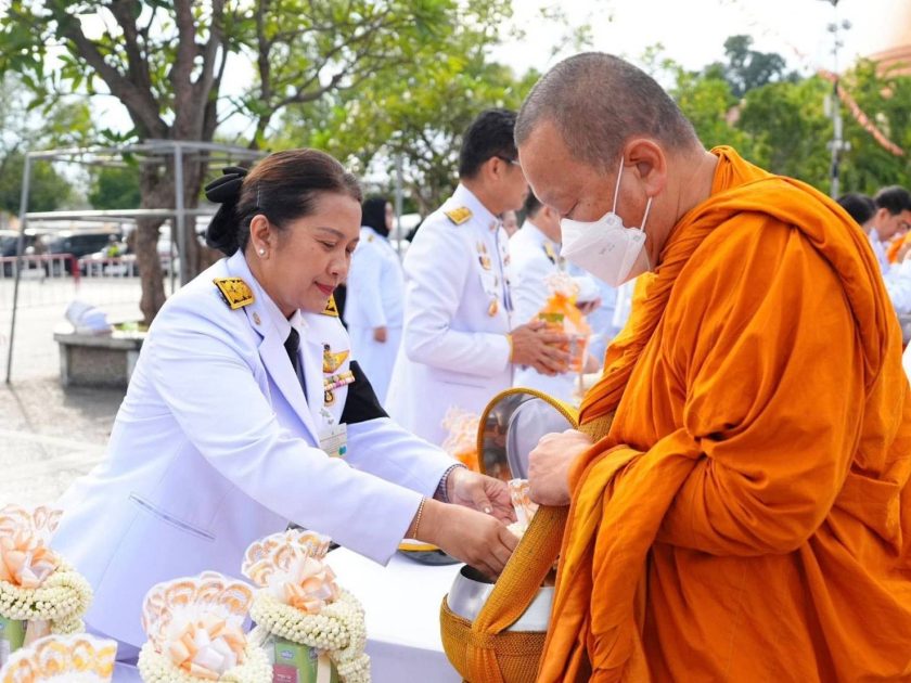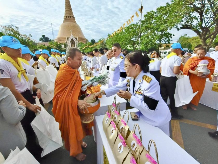 โดยพิธีช่วงเช้า เวลา ๐๗.๓๐ น. พระสงฆ์สมณศักดิ์ ๑๐ รูป เจริญพระพุทธมนต์ ได้แก่ สมเด็จพระมหาวีรวงศ์ วัดราชบพิธ สมเด็จพระมหารัชมุนี วัดไตรมิตร พระพรหมวัชรวิมลมุนี วิ. วัดมหาธาตุ ยุวราชรังสฤษฎิ์ พระพรหมวชิรรังสี วัดบวรนิเวศ พระธรรมวชิรเจติยาจารย์ วัดพระปฐมเจดีย์ พระธรรม วชิรปาโมกข์ วัดเทพศิรินทร์ พระธรรมวชิรจินดาภรณ์ วัดราชบพิธ พระราชวชิรสุตาภรณ์ วัดบางช้างเหนือ พระสิริวชิรเวที วัดสิริวัฒนาราม พระวินัยโกศล วัดเสนหา จากนั้น สมเด็จพระราชาคณะ พระราชาคณะ และคณะสงฆ์ จำนวน ๑๐๐ รูป รับบิณฑบาต