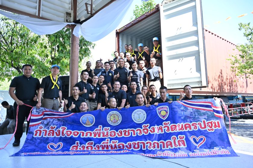 ซึ่งจังหวัดนครปฐมร่วมกับคณะสงฆ์ วัดพระปฐมเจดีย์ ราชวรมหาวิหาร หน่วยงานภาคีเครือข่าย ภาครัฐ ภาคเอกชน และประชาชนชาวนครปฐมรวมใจส่งมอบถุงยังชีพ จำนวน 2,000 ชุด ขึ้นรถบรรทุกเทเลอร์ และรถบรรทุก 6 ล้อ ซึ่งเป็นธารน้ำใจจากชาวนครปฐม จำนวน 2 คัน ออกเดินทางวันที่ 30 พ.ย. 68 ปลายทาง 2 จุด ได้แก่ วัดป่าก่อสุวรรณาราม อ.นาหม่อม จ.สงขลา และศาลากลางจังหวัดสงขลา รวมทั้งสิ้นจำนวน 2,000 ชุด