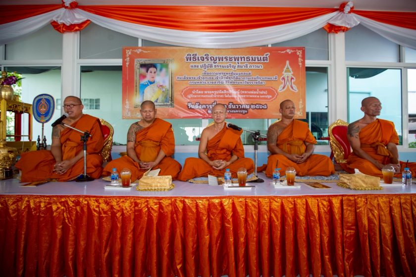 โดยพิธีเริ่มโดย บัญชาการเรือนจำกลางนครปฐม จุดธูปเทียนบูชาพระรัตนตรัย เปิดกรวยดอกไม้ธูปเทียนแพ ถวายราชสักการะเบื้องหน้าพระรูปสมเด็จพระเจ้าลูกเธอ เจ้าฟ้าพัชรกิติยาภา นเรนทิราเทพยวดี กรมหลวงราชสาริณีสิริพัชร มหาวัชรราชธิดา จากนั้นคณะสงฆ์ จำนวน 5 รูป เจริญพระพุทธมนต์เพื่อความเป็นสิริมงคล ก่อนผู้บัญชาการเรือนจำกลางนครปฐม พร้อมด้วยหัวหน้าส่วน จะถวายไทยธรรมแด่พระสงฆ์ จากนั้น พระครูปลัดสิทธิวัฒน์ (หลวงพี่น้ำฝน) ผู้รักษาการแทนเจ้าอาวาสวัดไผ่ล้อมพระอารามหลวงนำการกำหนดจิตเจริญสมาธิภาวนา และพระสงฆ์ได้อนุโมทนา กรวดน้ำ และให้พร เป็นอันเสร็จพิธี