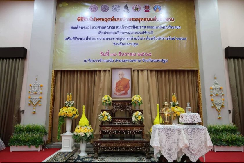 เมื่อวันที่ 30 ธันวาคม 2568 เวลา12.30 น. ผู้สื่อข่าวรายงานว่าที่ศาลาปฏิบัติธรรม 101 ปี หลวงพ่อสงัด อุคฺคเสนโน วัดบางช้างเหนือ จังหวัดนครปฐม โดยสำนักงานวัฒนธรรมจังหวัดนครปฐม ร่วมกับ วัดบางช้างเหนือ และสำนักงานพระพุทธศาสนาจังหวัดนครปฐม จัดพิธีรับไฟพระฤกษ์และน้ำพระพุทธมนต์ประทานของสมเด็จพระอริยวงศาคตญาณ สมเด็จพระสังฆราชสกลมหาสังฆปริณายก เพื่อนำไปประกอบกิจกรรมสวดมนต์ข้ามปีเสริมสิริมงคลทั่วไทย ถวายพระราชกุศล ส่งท้ายปีเก่าต้อนรับศักราชใหม่ 2569 จังหวัดนครปฐม