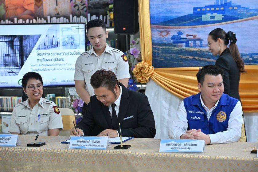 วันที่ 29 มกราคม 2569 ที่เรือนจำกลางนครปฐม นายยุทธนา นาคเรืองศรี รองอธิบดีกรมราชทัณฑ์ เป็นสักขีพยานในพิธีลงนามบันทึกข้อตกลงความร่วมมือ โครงการฝึกวิชาชีพ และฝึกทักษะการทำงานให้แก่ผู้ต้องขังในสถานประกอบการนอกเรือนจำ โดยมี นายจักร ลิ่มบุตร ผู้บัญชาการเรือนจำกลางนครปฐม นางสาวณัฏฐ์ปภาณ จันทร์ละมูล นายกสมาคมสตรีนักธุรกิจและวิชาชีพแห่งประเทศไทย-นครปฐม ดร.ศิริพงษ์ สีใสไพร ประธานกรรมการผู้บริหาร บริษัทรีโว่เมด กรุ๊ป จำกัด ร่วมลงนามบันทึกข้อตกลงความร่วมมือ โครงการฝึกวิชาชีพและฝึกทักษะการทำงานให้แก่ผู้ต้องขังในสถานประกอบการนอกเรือนจำ พร้อมด้วย นายโชติพงศ์ เปล่งวิทยา นายอำเภอเมืองนครปฐม พันตำรวจโทสุธี ชื่นจิตต์ รองผู้กำกับป้องกันปราบปราม สถานีตำรวจภูธรเพ จ.ระยอง ในฐานะเลขานุการโครงการคืนคนดีสู่สังคม นายสุรสีห์ ศรีอินสุทธิ์ ประธานหอการค้าภาคกลาง และคณะทำงานทั้ง 3 ฝ่าย ร่วมเป็นสักขีพยาน เพื่อเตรียมความพร้อมก่อนปล่อยให้ผู้ต้องขัง โดยมุ่งเน้นการเสริมสร้างทักษะอาชีพและประสบการณ์จากการทำงานจริงในสถานประกอบการ เพื่อให้ผู้ต้องขังมีรายได้เลี้ยงตนเองระหว่างต้องโทษ และมีอาชีพที่มั่นคงรองรับภายหลังพ้นโทษ อันเป็นการลดโอกาสในการกระทำผิดซ้ำและสร้างการยอมรับจากสังคมอย่างยั่งยืน