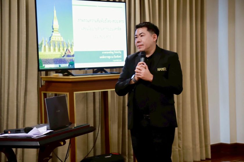 วันพุธที่ 4 กุมภาพันธ์ 2569 มทร.รัตนโกสินทร์ นำโดย รศ.ดร.อุดมวิทย์ ไชยสกุลเกียรติ อธิการบดี พร้อมด้วยคณะผู้บริหารและบุคลากรผู้เข้าร่วมโครงการประชุมเชิงปฏิบัติการ Carbon Neutral University เดินทางไปศึกษาดูงานด้านนโยบายและแนวทางการลดการปลดปล่อยคาร์บอนของ สปป.ลาว ณ สถานเอกอัครราชทูตไทย นครเวียงจันทน์ โดยมีคุณครองขนิษฐ รักเจริญ เอกอัครราชทูตไทย ประจำ ส.ป.ป.ลาว ให้การต้อนรับ คณะได้รับฟังการบรรยายเกี่ยวกับความสัมพันธ์เชิงยุทธศาสตร์เพื่อการเจริญเติบโตและการพัฒนาอย่างยั่งยืนระหว่างไทยและ สปป.ลาว ภายใต้แนวคิด “ญาติก็ใกล้ชิด มิตรก็ใกล้บ้าน” และ “กินข้าวร่วมนา กินปลาร่วมน้ำ” รวมถึงบทบาทของ สปป.ลาว ในการเป็นจุดเชื่อมโยงคมนาคมของภูมิภาค (Land bridge / Land link) นอกจากนี้ ยังได้รับทราบแนวทางการพัฒนาเศรษฐกิจสีเขียว เอกสารยุทธศาสตร์ระดับชาติ และรูปแบบความร่วมมือโครงการ Carbon Credit ทั้งในระดับทวิภาคีและความร่วมมือระหว่างรัฐกับเอกชน ซึ่งเป็นประโยชน์ต่อการนำไปปรับใช้ในการขับเคลื่อนโครงการ Carbon Neutral University ของ มทร.รัตนโกสินทร์ ต่อไป