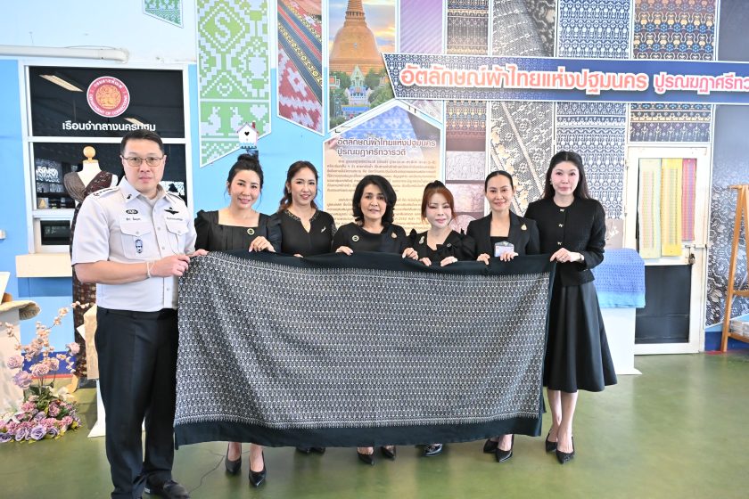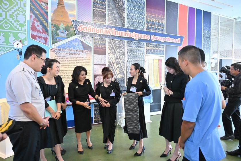 นางสาวณัฏฐ์ปภาณ จันทร์ละมูล นายกสมาคมสตรีนักธุรกิจและวิชาชีพแห่งประเทศไทย-นครปฐม /ประธานบริษัทประชารัฐรักสามัคคีวิสาหกิจเพื่อสังคม-นครปฐม พร้อมด้วยคณะกรรมการสมาคมสตรีนักธุรกิจและวิชาชีพแห่งประเทศไทย-นครปฐม และท่านพันตำรวจโทสุธี ชื่นจิตต์ รองผู้กำกับป้องกันปราบปราม สถานีตำรวจภูธรเพ จ.ระยอง ในฐานะเลขานุการโครงการคืนคนดีสู่สังคม เยี่ยมชมกิจกรรมส่งเสริมการทอผ้าลายอัตลักษณ์ประจำจังหวัด “ปูรณฆฏาศรีทวารวดี” ณ เรือนจำกลางนครปฐม ซึ่งจังหวัดนครปฐมได้ส่งเสริมให้ผู้ต้องขังชายฝึกอบรมทอผ้าเพื่อสร้างอาชีพและรายได้เลี้ยงตนเองระหว่างต้องโทษ โดยมีนายจักร ลิ่มบุตร ผู้บัญชาการเรือนจำกลางนครปฐม นำเยี่ยมชมการทอผ้าลายอัตลักษณ์ประจำจังหวัด “ปูรณฆฏาศรีทวารวดี” ในโอกาสนี้ ทางสมาคมได้จัดการสั่งซื้อทอพิเศษ 10 ชุด เพื่อส่งเสริมผู้ต้องขังให้มีรายได้ระหว่างต้องโทษ