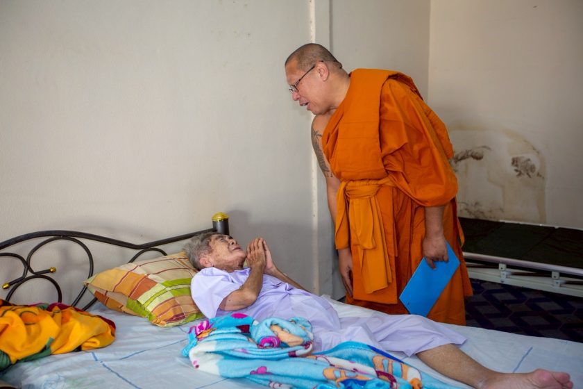 โดยเรื่องราวดังกล่าว พระครูปลัดสิทธิวัฒน์ (หลวงพี่น้ำฝน) ผู้รักษาการแทนเจ้าอาวาสวัดไผ่ล้อมพระอารามหลวง จังหวัดนครปฐม ได้นำคณะสงฆ์และเจ้าหน้าที่ประจำโครงการธนาคารแห่งกำลังใจ วัดไผ่ล้อมฯ ประสานงานกับ อสม.ตำบลพ่อพลับ เพื่อนำเตียงสำหรับผู้ป่วย ผู้ป่วย พร้อมรถวีลแชร์ ข้าวสาร น้ำดื่ม ของอุปโภค บริโภค ผ้าอ้อม เพื่อนำไปยังบ้านเลขที่ 116/5 ถ.ทหารบก 4 ต.บ่อพลับ อ.เมือง จ.นครปฐม ไปมอบให้กับ นางกุ้ยเง็ก แซ่แต้ อายุ 74 ปี ผู้ป่วยติดเตียง ที่ป่วยด้วยโรคเบาหวาน,โรคความดันโลหิตสูง,โรคกล้ามเนื้ออ่อนแรง,โรคกระดูกทับเส้น โดยมี พระดำรง ค้าทวี พระลูกชาย อายุ 45 ปี ซึ่งจำพรรษาอยู่วัดพระปฐมเจดีย์ ราชวรมหาวิหาร เป็นผู้ดูแลอยู่ไม่ห่าง