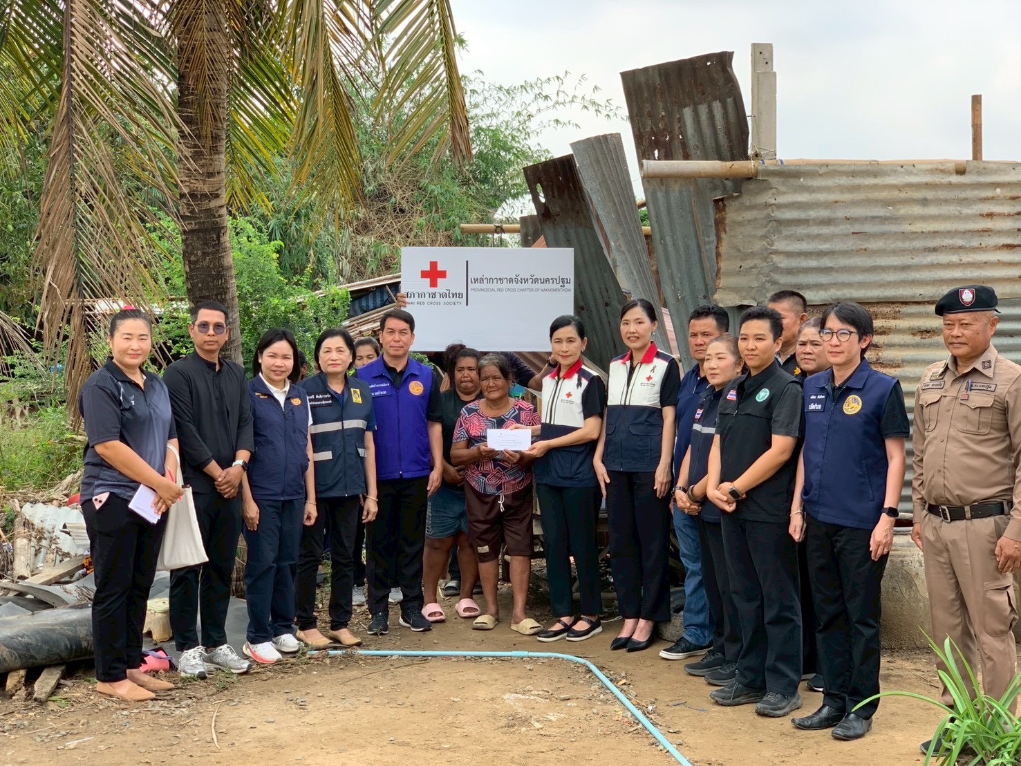 วันที่ 25 กุมภาพันธ์ พ.ศ. 2569 เวลา 10.00 น. นางสาวอโรชา นันทมนตรี ผู้ว่าราชการจังหวัดนครปฐม/นายกเหล่ากาชาดจังหวัดนครปฐม พร้อมด้วย นางศิริรักษ์ สุพรรณไพ รองนายกเหล่ากาชาดจังหวัดนครปฐม นายเกียรติศักดิ์ ธนาวรรณโอภาส นายอำเภอกำแพงแสน ปลัดอำเภอกำแพงแสน สาธารณสุขอำเภอกำแพงแสน พัฒนาการอำเภอกำแพงแสน กำนันตำบลทุ่งบัว องค์การปกครองส่วนท้องถิ่น ผู้นำท้องที่ ท้องถิ่น และหน่วยงานที่เกี่ยวข้อง ลงพื้นที่เยี่ยม และให้กำลังใจผู้ประสบวาตภัย โดยเหตุเกิดขึ้นเมื่อวันที่ 22 กุมภาพันธ์ 2569 เวลา 19.00 น. ที่ผ่านมา เหล่ากาชาดจังหวัดนครปฐม ได้มอบถุงยังชีพ น้ำดื่ม และนม พร้อมเงินช่วยเหลือ จำนวน 10,000 บาท ให้แก่ นายวรพล หอมจันทร์ เพื่อบรรเทาความเดือดร้อนเบื้องต้น โดยบ้านพักอาศัย ได้รับความเสียหายอย่างรุนแรง ไม่มีผู้ได้รับบาดเจ็บและเสียชีวิต นอกจากนี้ ผู้ว่าราชการจังหวัดนครปฐม/นายกเหล่ากาชาดจังหวัดนครปฐม ได้สั่งการจัดสรรงบประมาณ โครงการบ้านกาชาดรวมใจ จำนวน 200,000 บาท ให้ผู้ประสบภัยดังกล่าวอีกด้วย ณ บ้านเลขที่ 79/1 หมู่ที่ 8 ตำบลทุ่งบัว อำเภอกำแพงแสน จังหวัดนครปฐม