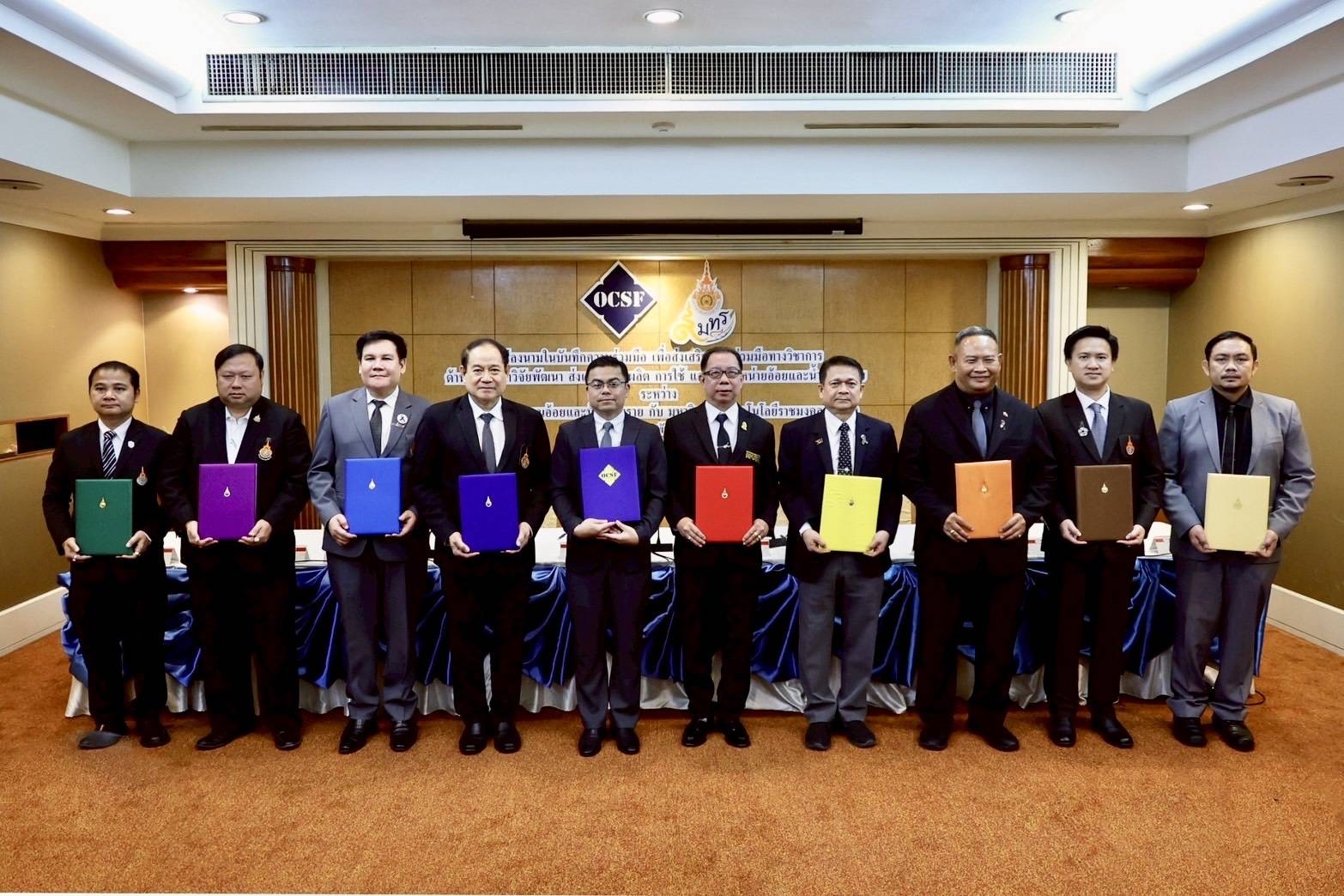 วันศุกร์ที่ 27 กุมภาพันธ์ 2569 มหาวิทยาลัยเทคโนโลยีราชมงคลรัตนโกสินทร์ นำโดย รศ.ดร.อุดมวิทย์ ไชยสกุลเกียรติ รักษาราชการแทนอธิการบดี (ประธาน ทปอ.มทร.) พร้อมด้วยคณะผู้บริหาร เข้าร่วมพิธีลงนามบันทึกความร่วมมือ (MOU) ระหว่าง สำนักงานกองทุนอ้อยและน้ำตาลทราย กับมหาวิทยาลัยเทคโนโลยีราชมงคลทั้ง 9 แห่ง ณ โรงแรมรามาการ์เด้นส์ กรุงเทพมหานคร เพื่อส่งเสริมความร่วมมือและสนับสนุนการพัฒนาด้านวิชาการ ด้านการศึกษา วิจัยพัฒนา ส่งเสริม การผลิต การใช้ และการจำหน่ายอ้อยและน้ำตาลทราย รวมถึงการเสริมสร้างศักยภาพระหว่างหน่วยงาน อันจะนำไปสู่การส่งเสริมการศึกษา วิจัย และพัฒนาอุตสาหกรรมอ้อยและน้ำตาลทรายให้สอดคล้องกับนโยบายของประเทศในด้านเศรษฐกิจ สังคม และสิ่งแวดล้อมอย่างยั่งยืน โดยมีเป้าหมายในการยกระดับคุณภาพความหวานของอ้อยและน้ำตาลทราย การประยุกต์ใช้นวัตกรรมการเกษตรเพื่อเพิ่มมูลค่าผลผลิต ตลอดจนการสนับสนุนแนวทาง Smart Farming ผ่านการเชื่อมโยงงานวิชาการ การเผยแพร่ข้อมูลข่าวสาร การแลกเปลี่ยนองค์ความรู้ การจัดกิจกรรมร่วมกัน และการสนับสนุนทุนวิจัยภายใต้กรอบกฎหมายที่เกี่ยวข้อง ทั้งนี้ ความร่วมมือดังกล่าวมีระยะเวลา 2 ปี นับแต่วันที่ลงนาม และถือเป็นกรอบความร่วมมือทางวิชาการเบื้องต้นที่ทั้งสองฝ่ายจะร่วมกันกำหนดรายละเอียดโครงการต่าง ๆ ให้เกิดผลเป็นรูปธรรมต่อไป
