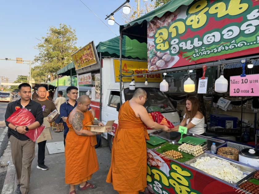 พ่อค้า แม่ค้าขายงานวัดไร่ขิง สุดปลื้ม ผู้ช่วยเจ้าอาวาสวัดไร่ขิง เดินแจกผ้ายันต์และวัตถุมงคลที่ระลึก งานประจำปีวันสุดท้าย